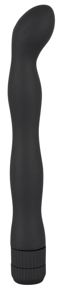 Gegolfde anaalvibrator met een ronde punt en traploos regelbare vibratie. Zwart. Ca. 18 cm lang, Ø 1,7-2,4 cm. Materiaal: ABS. (Gelieve batterijen apart te bestellen: 2 x Micro/AAA)