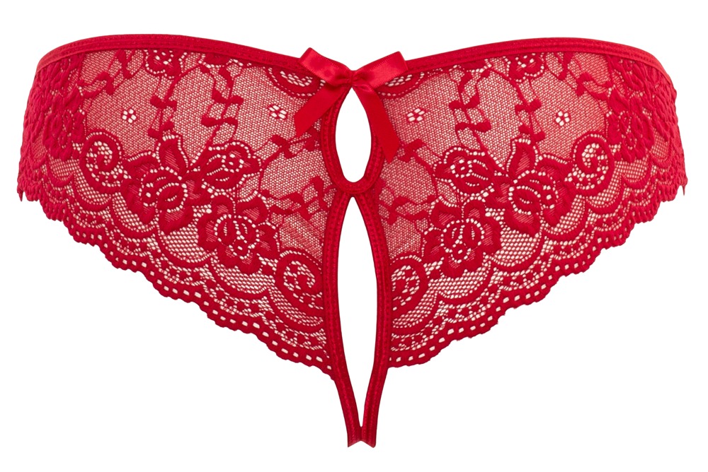 Dit zoete broekje combineert edel bloemenkant met met strik versierde uitsnijdingen aan de voor- en achterkant. Het kruis wordt slechts door 2 elastieken vastgehouden en geeft een zeer erotische inkijk. Dankzij het hoge spandexgehalte is de slip aangenaam comfortabel en sluit hij perfect aan bij de vrouwelijke rondingen.