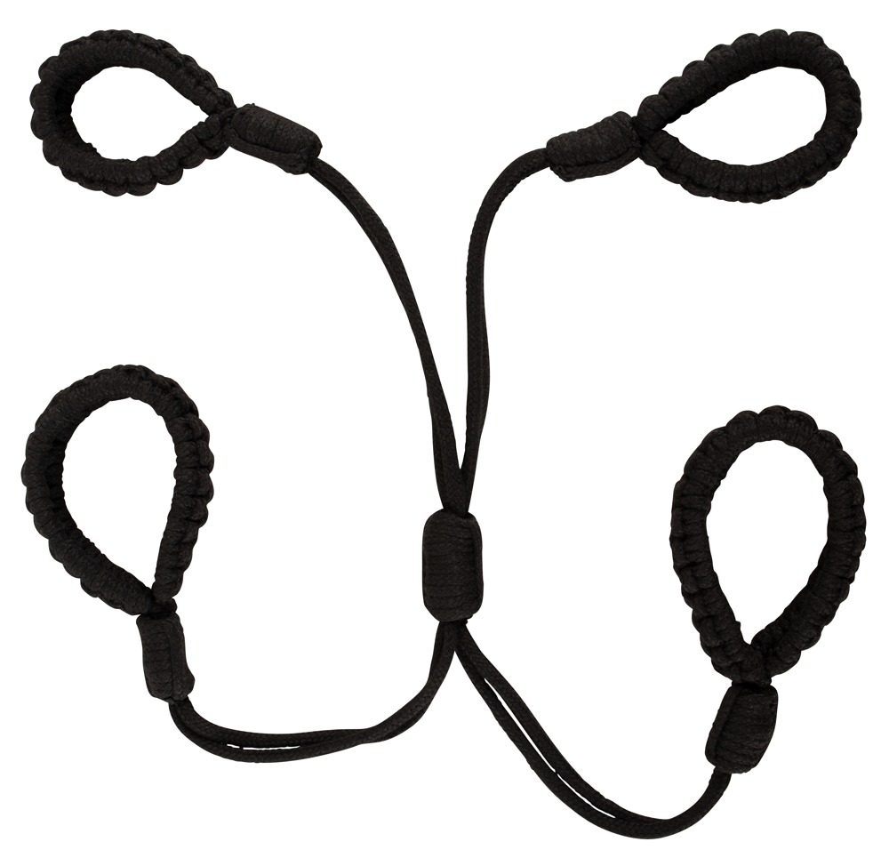 De Cuff Set Rope van Bad Kitty bestaat uit een boeienkruis met hand- en voetlussen. De boeien zijn gemaakt van zachte gedraaide katoenen touwen en met zijn traploos verstelbare knopen is hij snel om te doen en comfortabel af te stellen op de juiste omtrek van de polsen en enkels – perfect voor bondage beginners!