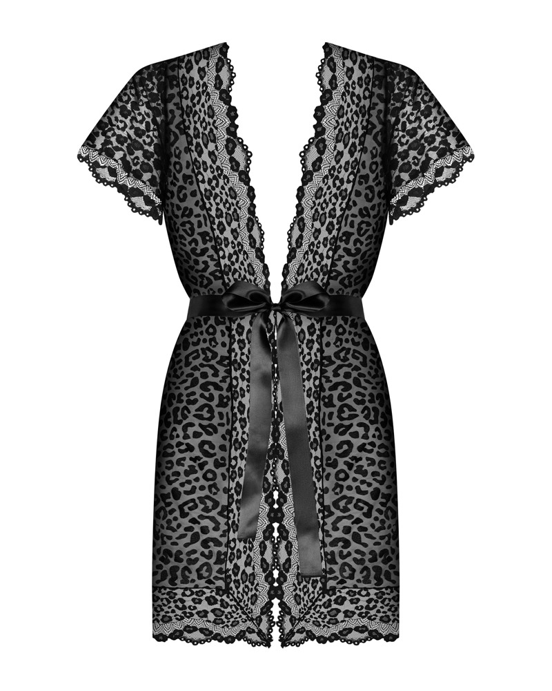 – een ultra sexy zwarte peignoir – het unieke fluweel- en luipaardpatroon voegt een zekere pit toe
