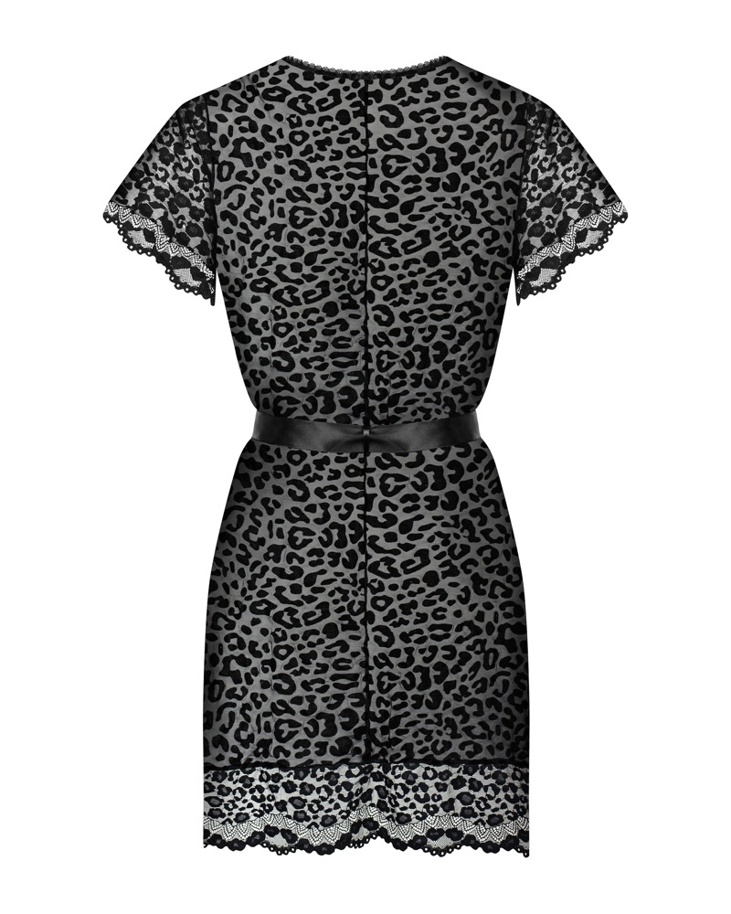 Een 100% comfortabele en sexy peignoir? Kijk uit naar het model uit de Giully collectie! Deze gitzwarte, ongebruikelijk gesneden peignoir versierd met een dierenmotief maakt van jou iets heel bijzonders! Voel je een vleugje speelsheid?