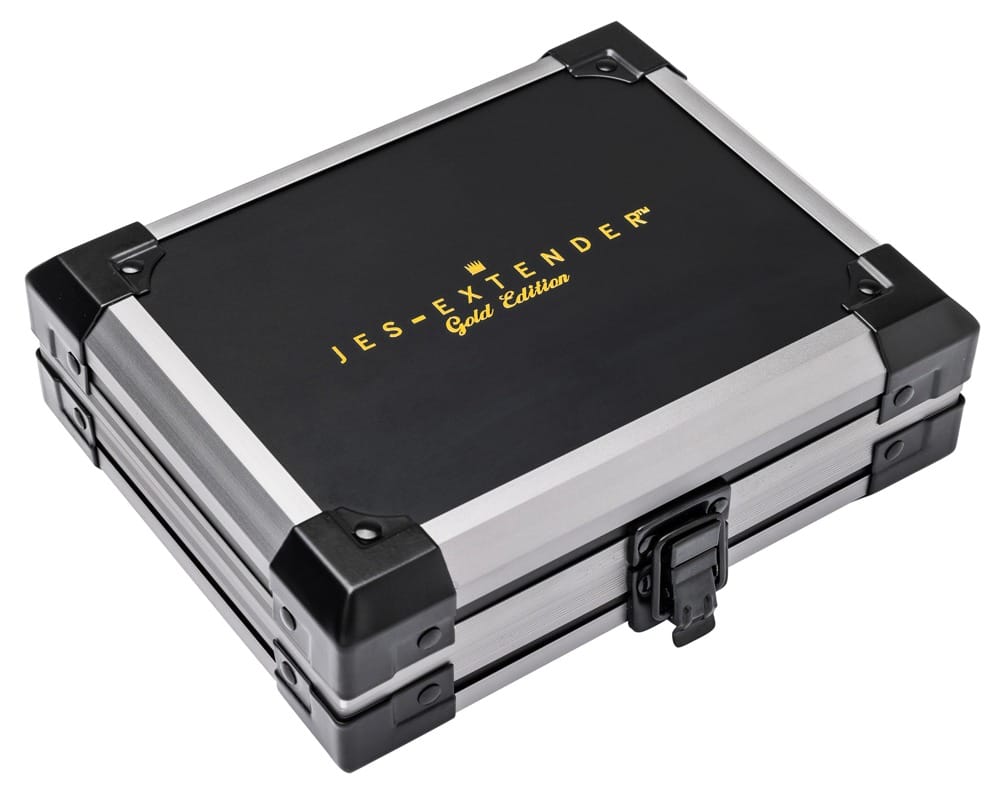 De zachte manier van penisvergroting met 24-karaats gouden coating!nPenis expander set Gold Standard van Jes-Extender voor pijnloze penisvergroting met blijvend succes. Werkt effectief volgens het principe van zachte permanente stretching om de aanmaak van weefselcellen te stimuleren. De toename beïnvloedt zowel de lengte als de omtrek van de penis. Het regelmatig dragen van de expander kan ook de erectiele functie en het orgasme verbeteren. Hij draagt comfortabel en discreet onder losse kleding en hindert niet bij het zitten of bij activiteiten.nnDe hoogwaardige penis expander is ontworpen, gepatenteerd en handgemaakt in Denemarken en is geschikt voor penismaten tot 24 cm. Snel en eenvoudig te monteren, individueel instelbaar en aanpasbaar voor elke drager. Met zijn 24-karaats vergulding ziet de expander er zeer luxueus en stijlvol uit. Het mooie houten doosje bevat alles wat je nodig hebt om je penis meteen op te rekken:n1 x basisstationn1 x dubbele functie voorstukn1 x siliconenslangn1 x comfortriemn2 x beschermende padsn2 x – ½ inch/1,25 cm expansiestavenn2 x – 1 inch/2,5 cm expansiestavenn4 x – 2 inch/5 cm expansiestavenn1 x set sleutelsn1 x Cohesief gaasjen1 x klittenbandn1 x Jes-Extender QuickGuide en toegang tot online instructievideo’s.nn5 jaar en 100% geld terug garantie!nnMessing, Nitin, POM.