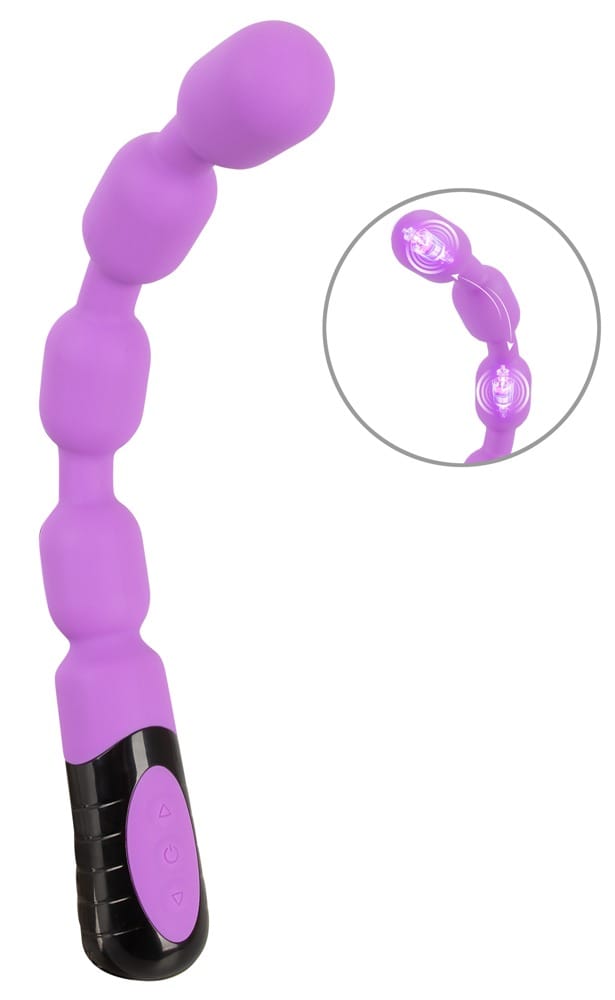 Pleasure spot specialist!nDe lange, perfect gebogen High Performance Beads bullet vibrator van You2Toys bereikt gemakkelijk de vaginale G-spot of anale P-spot voor een intense en gerichte genotsmassage. Met zijn zijdezachte oppervlak is de stevige bullet vibrator gemakkelijk in te brengen. De gebogen, niet-flexibele bullet schacht wordt vervolgens eenvoudig op en neer bewogen als een hefboom met behulp van het ergonomische handvat. Stimulatie van genotspunten kan niet eenvoudiger en comfortabeler!nnTwee motoren zorgen voor de krachtige vibraties, die vooral sterk voelbaar zijn in het uiteinde en de middelste bal. In totaal 9 vibratiestanden zorgen ervoor dat je je nooit hoeft te vervelen en kunnen gemakkelijk worden bediend met een druk op de knop van de praktische hendel. Bijzonder ingenieus is de speciale stand, waarbij de vibraties automatisch heen en weer schakelen tussen de twee motoren. Voor een intiem en verrassend samenspel van fantastische sensaties! Zelfs in bad en onder de douche, want de bullet vibrator is waterproof.nnOplaadbaar – USB-oplaadkabel inbegrepen. nnTotale lengte 33 cm, inbrenglengte 25 cm, Ø 1,6 cm-3 cm.nGewicht 171 g.nSiliconen, PU, ABS.