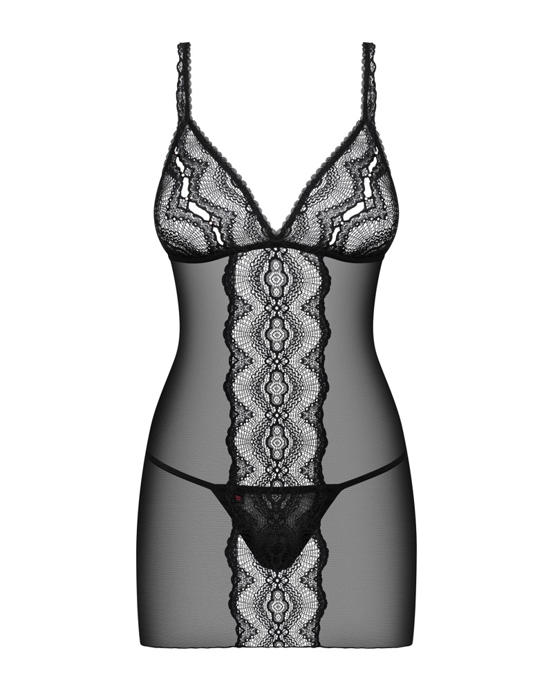 Extra korte, aansluitende negligé en bijpassende string in de Lucita set van Obsessive. Fijn tule transparant met delicaat kant aan de voorkant en op de cups. Overal zacht en elastisch voor volledig comfort. De bandjes zijn verstelbaar.