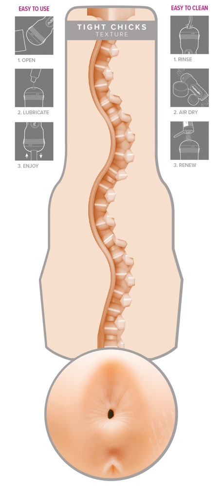Masturbator Maitland Ward Tight Chicks van Fleshlight met origineel gegoten anus opening van erotische ster Maitland Ward. En ook de zeer divers gestructureerde binnenkant komt heel dicht bij Maitlands strakke anale kanaal en zorgt voor een intense, orgasmebevorderende massage tijdens het handjobben. De binnenhoes van huidachtig zacht Superskin-materiaal is naast de opening voorzien van een handtekening van Maitland en kan gemakkelijk uit de handige, discrete doos met deksel worden genomen om te worden schoongemaakt.
