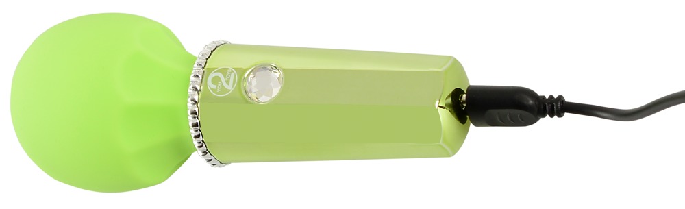 Kleine, handige massagestaaf Mini Wand Lemon van You2Toys in een fruitige, frisse sorbetkleur en elegante metallic look met een fonkelende glittersteen als bedieningsknop. Met zijn flexibele, zijdezachte massagekop is hij net zo geschikt voor uitgebreide massages als voor precieze stimulatie.