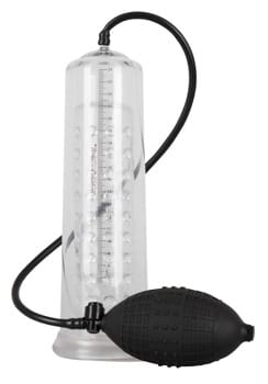 De penis, die met glijmiddel is ingewreven, wordt in de transparante cilinder geplaatst en stevig ingesloten door de zachte siliconenhuls bij de wortel. De handige pomp met geïntegreerd afvoerklepje zorgt voor een vacuüm en de transparante cilinder met de meetschaal geeft de respectievelijke grootte van de penis aan. Daarnaast wordt de penis gestimuleerd met een transparante siliconen hoes met noppen.