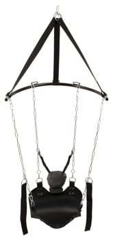 Het zit-/ligoppervlak (max. 75 cm lang, max. 49 cm breed) van dik leer en het zachte hoofdkussen (32 cm x max. 24 cm) zorgen voor comfortabel zitten/liggen. De hoek van de hoofdsteun kan worden aangepast voor nog meer comfortabele posities. De 2 hand/been lussen (Ø 25 cm) kunnen individueel worden bevestigd aan de stevige kettingen met hun karabijnhaken en zorgen voor een stevige grip.