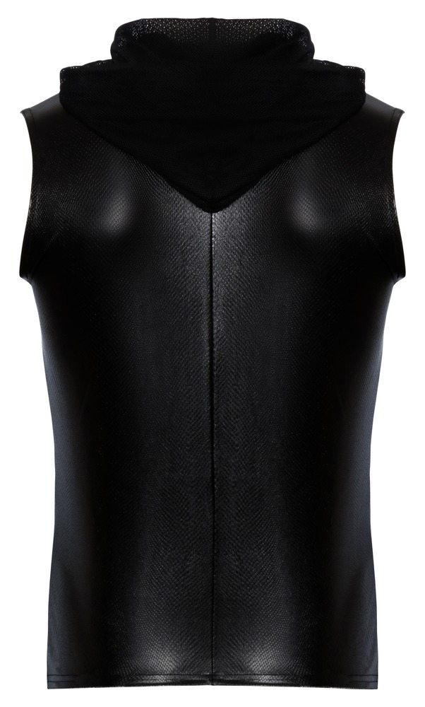 Kort mouwloos shirt van Noir in iriserende slangenleerlook. Fantastisch elastisch voor een aansluitende pasvorm en hoog draagcomfort. Stijlvol met capuchon van fijn zacht powernet met tunnelkoord. Doorlopende 2-wegrits aan de voorkant.