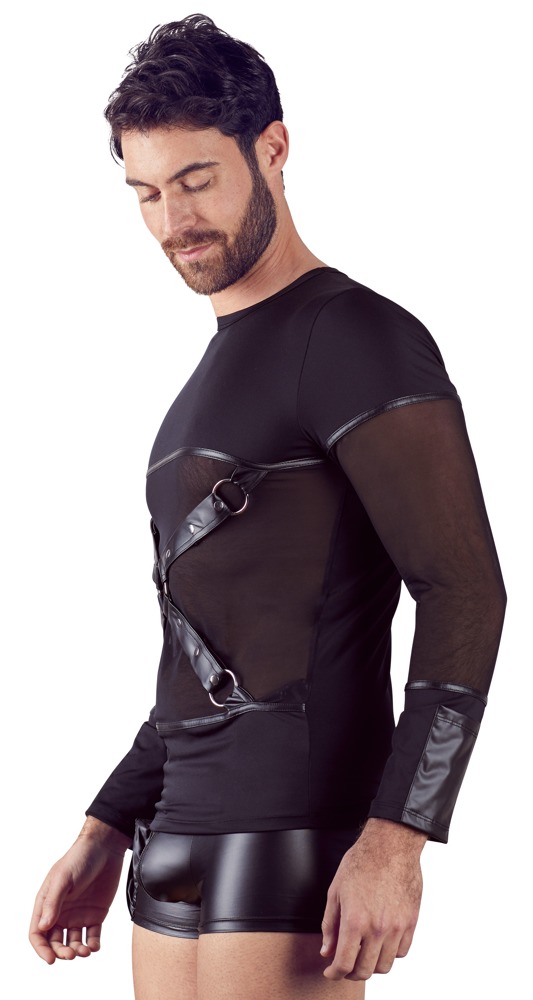 Longsleeve in matte look, met stijlvolle Powernet-inzet aan de voorzijde, die de spieren laat doorschijnen. Het afneembare borsttuig stelt mooie en exclusieve details voor de kijker vast, net als verleidelijke uitnodigingen die je meer willen.