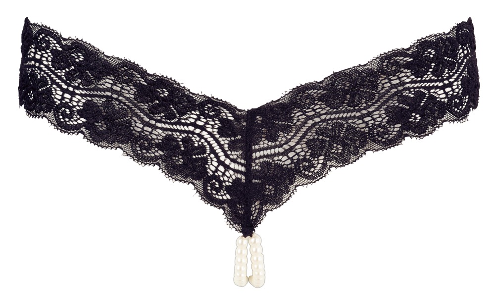 Opwindende string met stimulerende parelketting in het kruis. Het delicate gebloemde kant maakt de sexy look perfect.